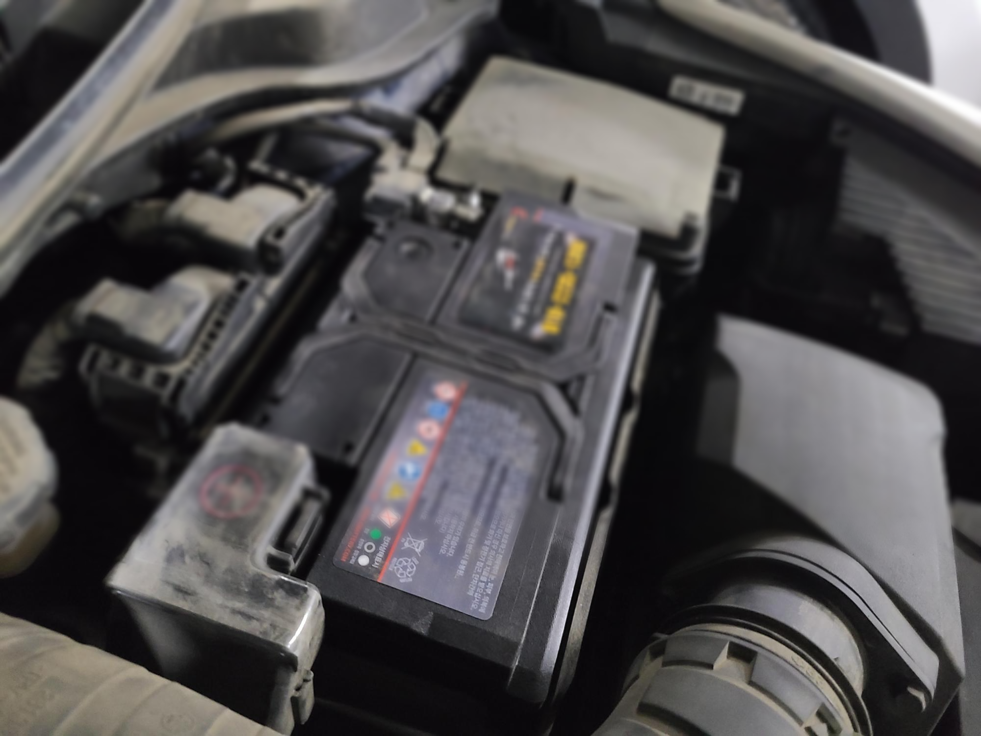 자동차 밧데리 모델명을 확인하는 방법은 간단합니다. 본 네트를 열고, 밧데리를 보시면요, 지금 위 사진에 모자이크 처리된 부분, 스티커가 붙여져 있는 부분에 모델명이 써있어요. 그대로 인터넷에 검색하시면 됩니다.