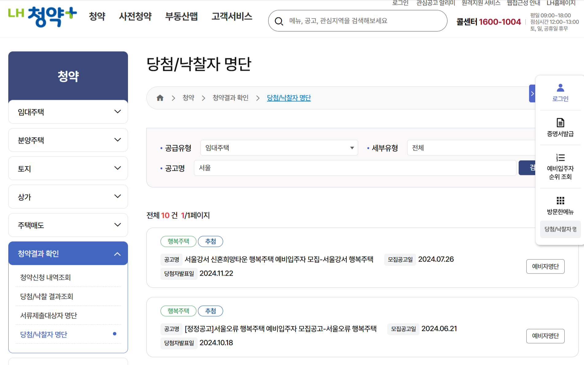 당첨자 발표는 LH 청약 홈페이지를 통해서 확인할 수 있습니다.